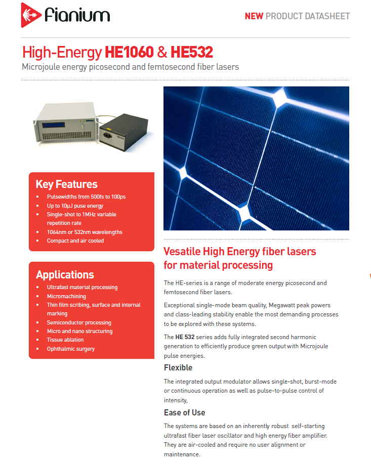 Fianium HE532-5uJ-SP激光系统具备较高设计生产水平与可靠技术和成熟经验的生产厂商,同时该公司还提供了优惠的价格和完善的售后技术服务。