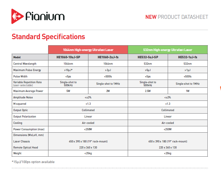 Fianium超快光纤激光器公司皮秒激光系统